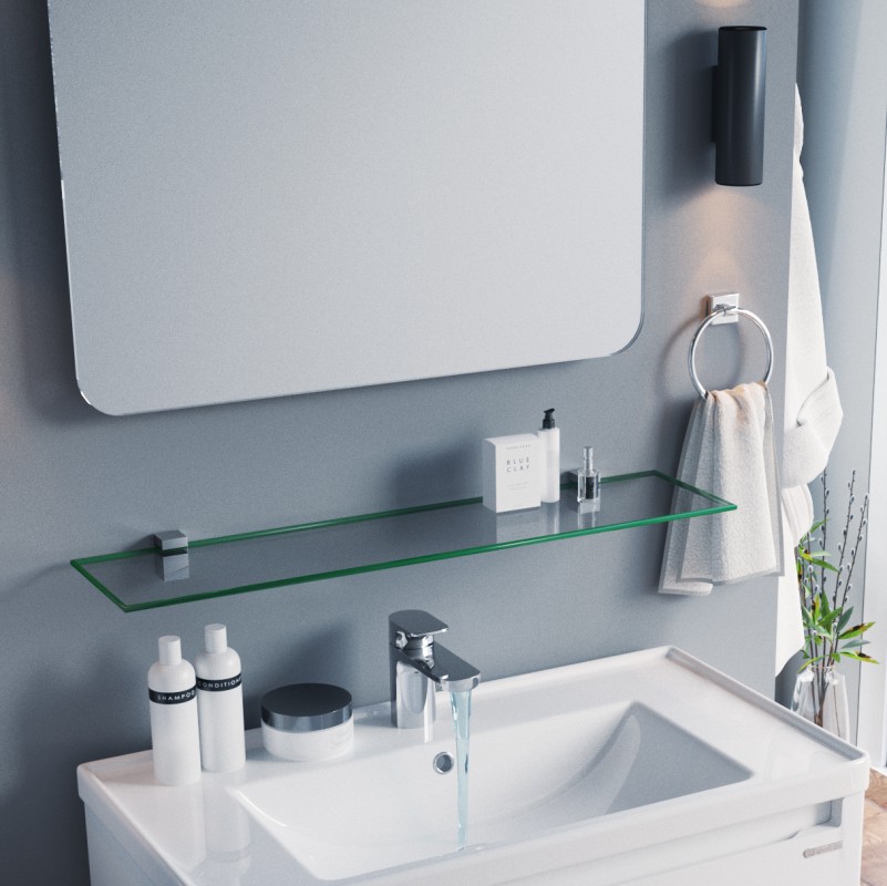 1) Полочка для ванной Sanwerk 1000х120х6 мм стеклянная сверхпрозрачная