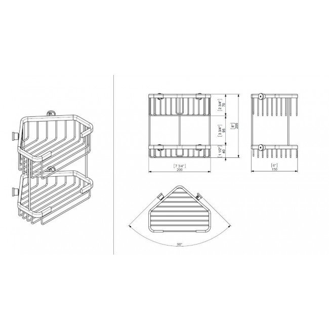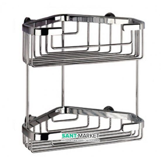 Двухъярусная полочка для ванной Contract-Hospitality великолепно подойдёт и для небольшой по площади ванной комнаты, успешно замещая более габаритную мебель, и для фанатов использования множества «баночек» во время купания. Благодаря сбалансированным размерам и двум ярусам, на ней поместится всё необходимое. Её габариты: 200х204x160 мм. Это подвесная модель для настенного монтажа. Как и все угловые полочки, она очень эргономична – благодаря оптимизированной конструкции она великолепно впишется даже в ограниченное пространство. К примеру, в небольшую душевую или в уголок над ванной, абсолютно не мешая во время принятия водных процедур и вмещая множество необходимых аксессуаров. Качественная латунь, из которой отлита эта угловая полочка, – прекрасный по прочностным характеристикам материал, удобный и приятный в обращении.
