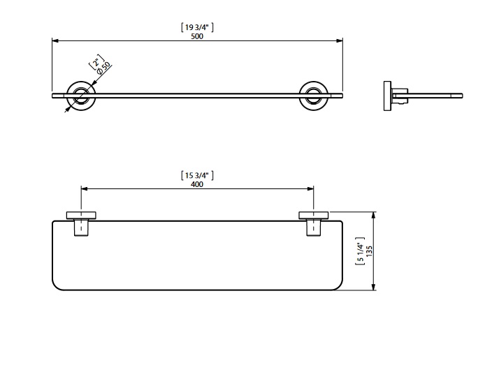 Полочка для ванной Sonia Tecno Project 50 см латунь/стекло белый