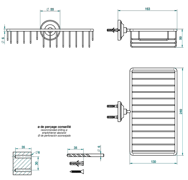 Полочка комбинированная для мыла и мочалки с фланцем 240 x 130 мм