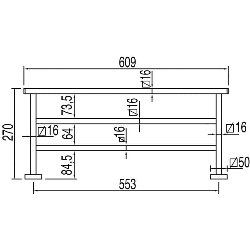 Полочка для ванной Tres Cuadro Tres 609 мм металл хром