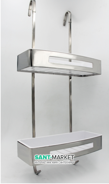 1) Полочка двойная для ванной Eger навесная нержавеющая сталь/пластик