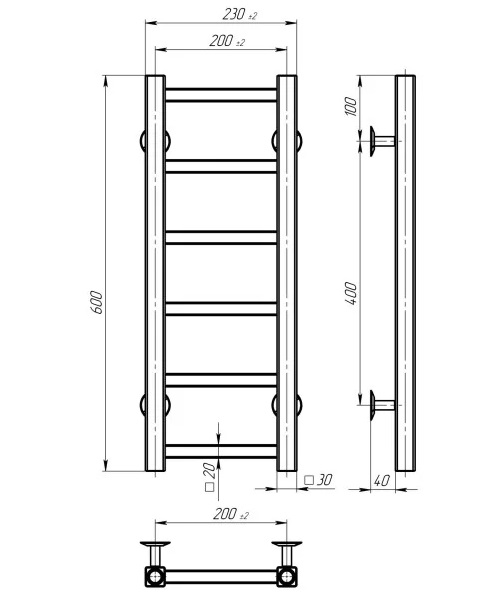 Полотенцесушитель водяной Deffi Forest П6 200х600 боковое левое подключение черный A.FR.60.20.6.B.B