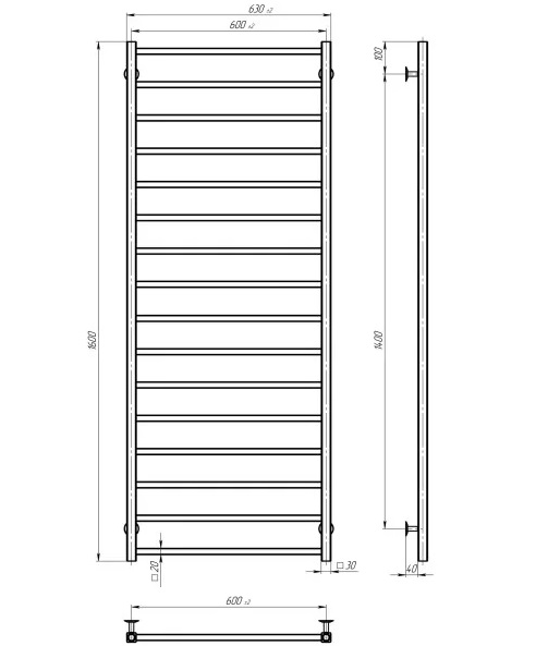Полотенцесушитель водяной Deffi Forest П16 600х1600 боковое левое подключение хром