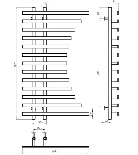 Полотенцесушитель водяной Deffi Gratsiya П13 600х1000 нижнее подключение черный