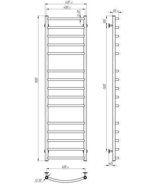Полотенцесушитель водяной Deffi Классик Элит П15 400х1500 нижнее подключение хром C.KE.150.40.15.C.A