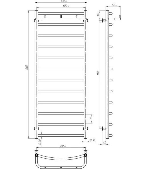 Полотенцесушитель водяной Deffi Классик N П12 500х1300 боковое правое подключение белый C.KN.130.50.12.W.C