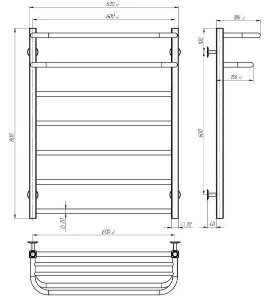 Полотенцесушитель водяной Deffi Lux Hotel П7 600х800 боковое левое подключение белый