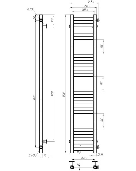 Полотенцесушитель водяной Deffi Magnus П16 200х1200 боковое правое подключение хром