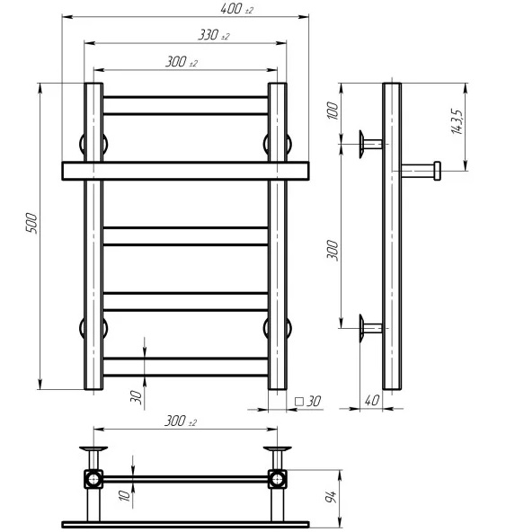 Полотенцесушитель водяной Deffi Nicolе П5 300х500 боковое левое подключение черный