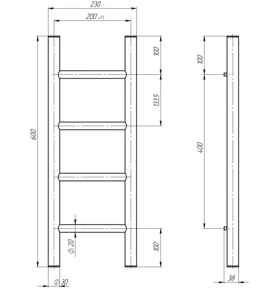 Полотенцесушитель водяной Deffi Орион П4 200х600 боковое правое подключение белый C.OR.60.20.4.W.C