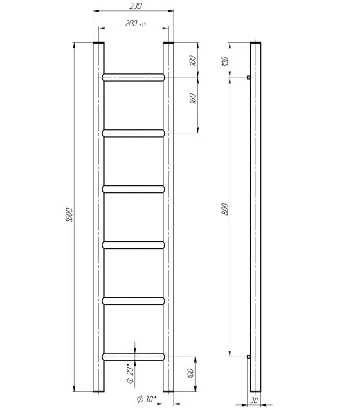 Полотенцесушитель водяной Deffi Орион П6 200х1000 нижнее подключение хром C.OR.100.20.6.C.A
