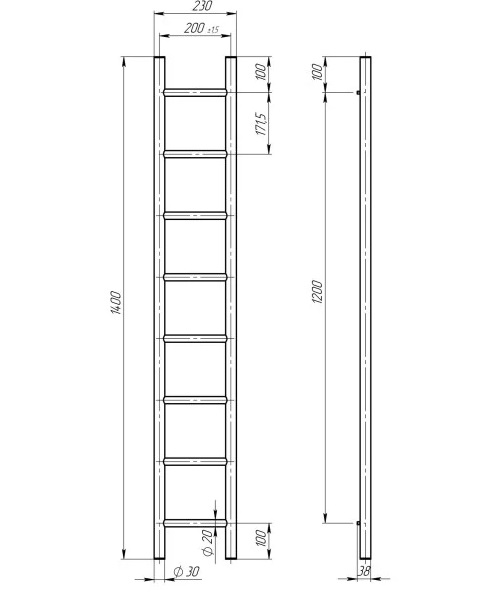 Полотенцесушитель водяной Deffi Орион П8 200х1400 боковое левое подключение черный