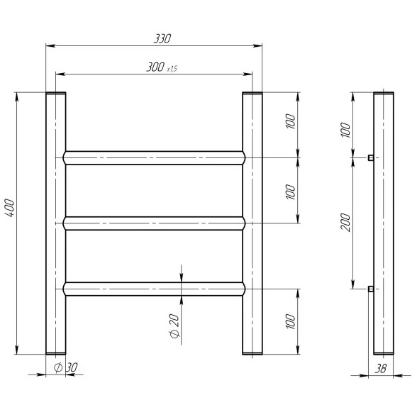 Полотенцесушитель водяной Deffi Орион П3 300х400 боковое правое подключение белый C.OR.40.30.3.W.C