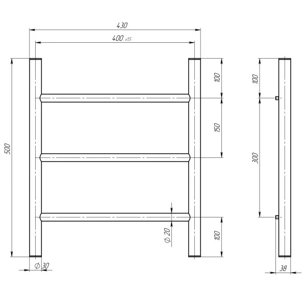 Полотенцесушитель водяной Deffi Орион П3 400х500 нижнее подключение хром
