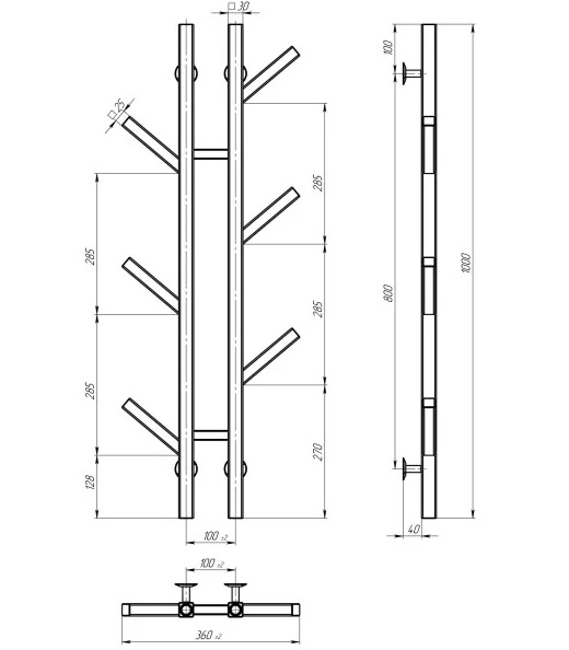 Полотенцесушитель водяной Deffi Sakura П6 100х1000 нижнее подключение черный A.SR.100.10.6.B.A
