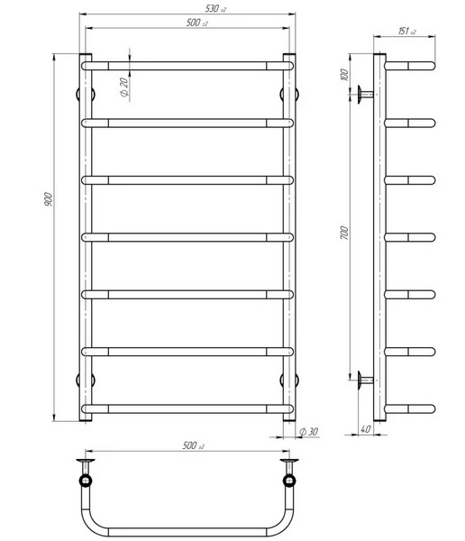 Полотенцесушитель водяной Deffi Стандарт П7 500х900 боковое правое подключение белый C.SS.90.50.7.W.C