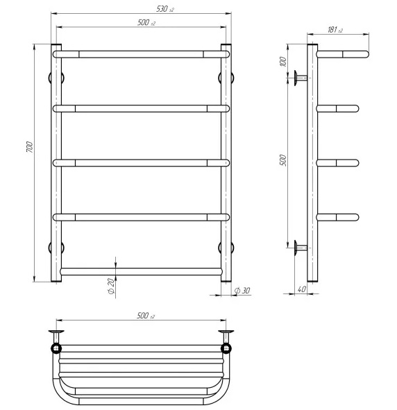 Полотенцесушитель водяной Deffi Стандарт с полкой П5 500х700 нижнее подключение хром C.SP.70.50.5.C.A