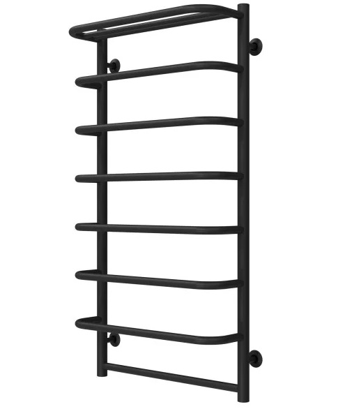 Полотенцесушитель водяной Deffi Стандарт с полкой П8 500х1000 боковое левое подключение черный C.SP.100.50.8.B.B