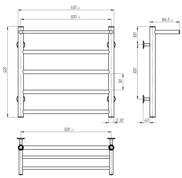 Полотенцесушитель водяной Deffi Терма П5 500х500 боковое правое подключение белый