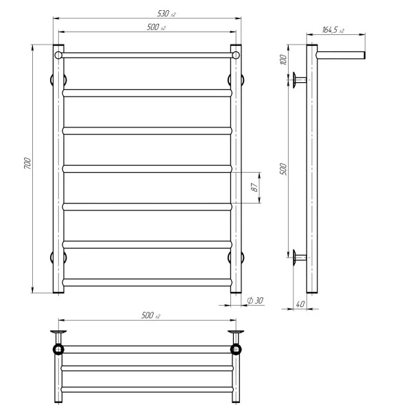 Полотенцесушитель водяной Deffi Терма П7 500х700 боковое правое подключение черный C.TE.80.50.8.B.C