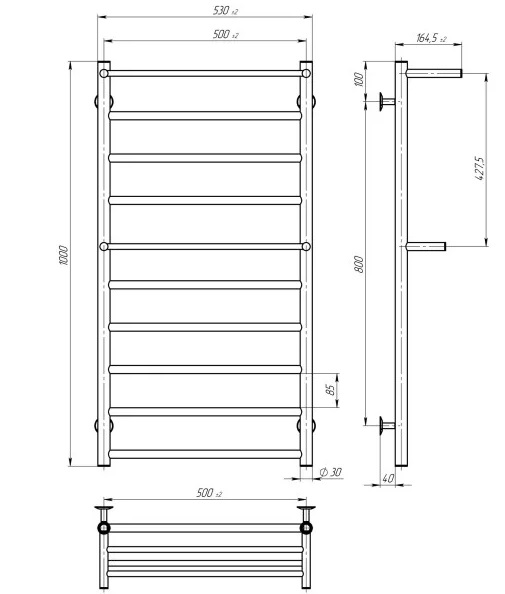 Полотенцесушитель водяной Deffi Терма Плюс П8 500х800 боковое правое подключение хром C.TA.80.50.8.C