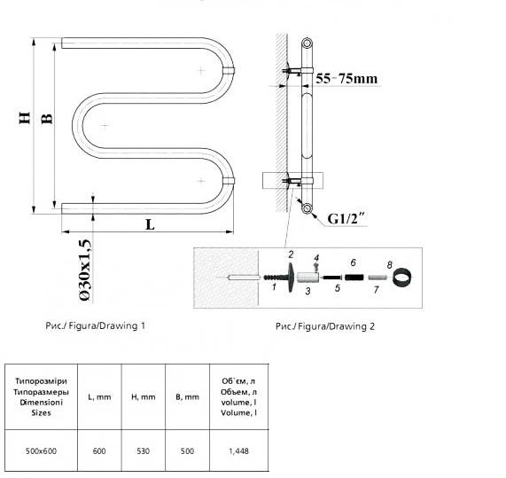 1) Полотенцесушитель водяной Devit Comfort 500х600 мм сталь хром