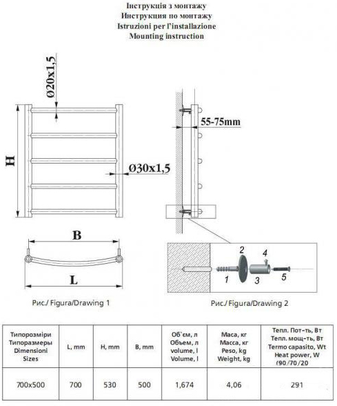 1) Полотенцесушитель водяной Devit Fresh 700х500 мм сталь хром