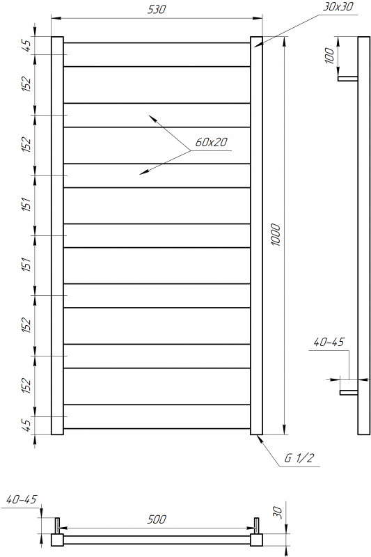 Дизайнерские полотенцесушители данного типа имеют целый ряд преимуществ. Они обладают хорошей теплоотдачей, благодаря чему способны не только подсушить воздух, предотвращая появление плесени, а и полноценно обогреть небольшую комнату. Продукция сертифицирована, соответствует международным стандартам качества. Ширина изделия стандартная – 530 мм, высота бывает 800, 1000 или 1200 мм. Межосевое расстояние – 500 мм. Комплект поставки включает в себя только полотенцесушитель и крепление, краны для гидравлического подключения нужно покупать отдельно.