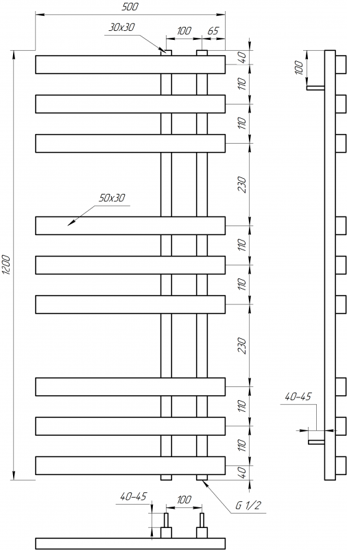 1) Полотенцесушитель водяной Genesis-Aqua Magnum 120x50 см черный
