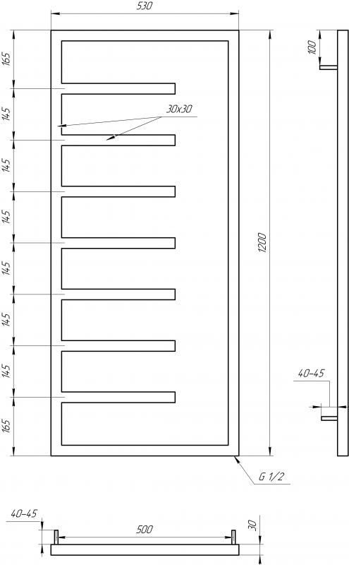 1) Полотенцесушитель водяной Genesis-Aqua Combo 120x53 см черный