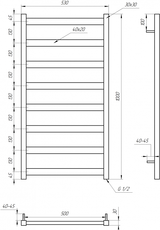 1) Полотенцесушитель водяной Genesis-Aqua Maxi 100x53 см черный