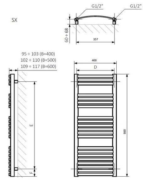 Полотенцесушитель водяной Terma Dexter 86х40 см SX хром