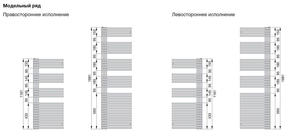 Дизайнерские полотенцесушители Zehnder Forma Asym представляют собой сварную конструкцию из горизонтальных нагревательных труб круглого сечения Ø 25 мм, толщина стенки 1,25 мм, изготовленных из стали, и вертикальных коллекторов круглого сечения Ø 38 мм, толщина стенки 1,5 мм.