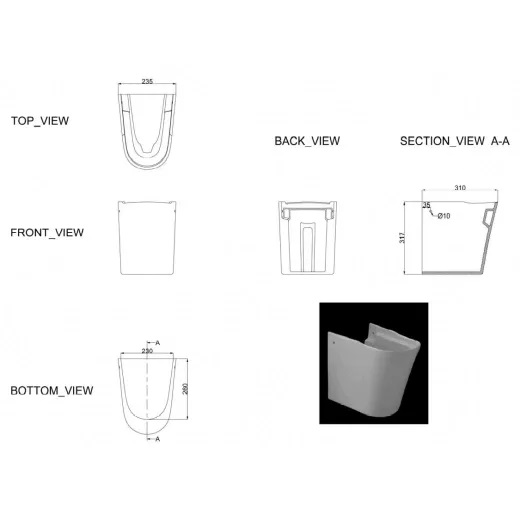 1) Полупъедистал для раковины Devit Gredos санфаянс белый
