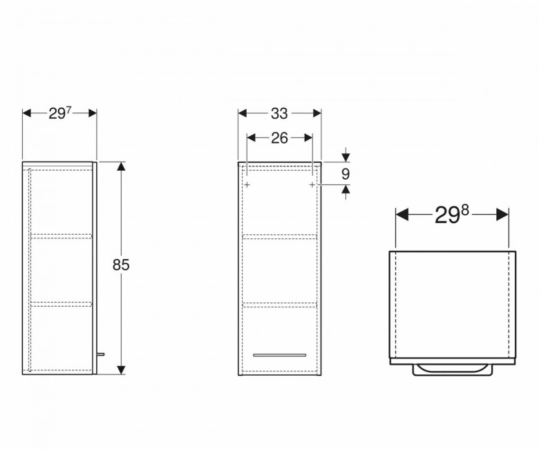 1) Полупенал для ванной Geberit Selnova Square 33x29,7 см подвесной ДСП лава