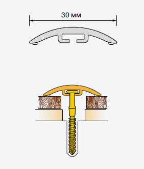 Порог C30 эстетически маскирует соединения напольных покрытий, выполненных на одинаковом уровне. Классическая арочная форма профиля, а также богатая цветовая гамма идеально подходят к каждому виду полов.
