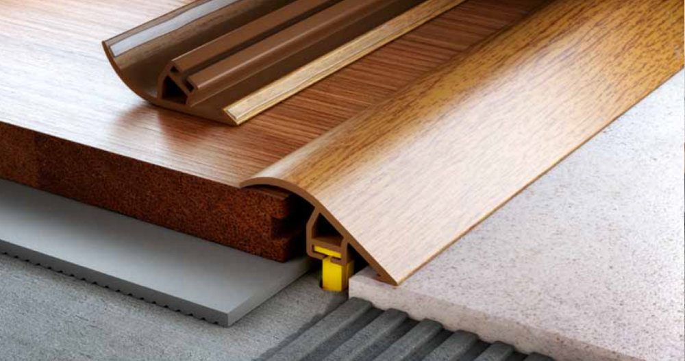 Порог С40 соединяет многоуровневые напольные покрытия. Создаёт эстетический вид и закрывает возможные неровности.