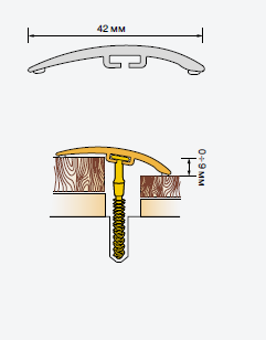 Порог С42 широкий, функциональный профиль соединяет многоуровненвые напольные покрытия, создаёт эстетический вид и закрывает возможные неровности, может быть использован при очень широкой дилатации. Профиль универсальный.