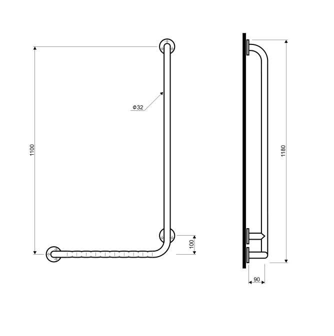 Поручень Kolo Lehnen Funktion правый гладкое горизонтальное плечо