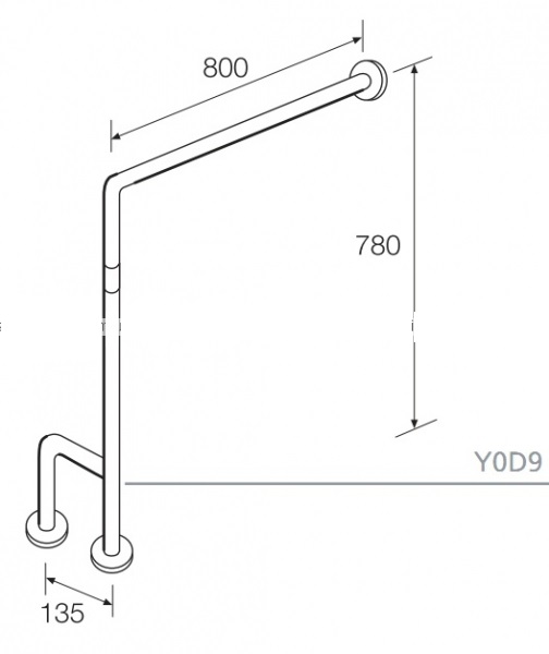Поручень-штанга безопасности, крепление к полу. С поддержкой справа или слева. Для людей с ограниченными возможностями.