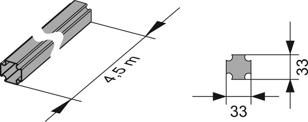 1) Профиль 33х33 мм TECE Teceprofil в штангах 4,5 м нержавеющая сталь