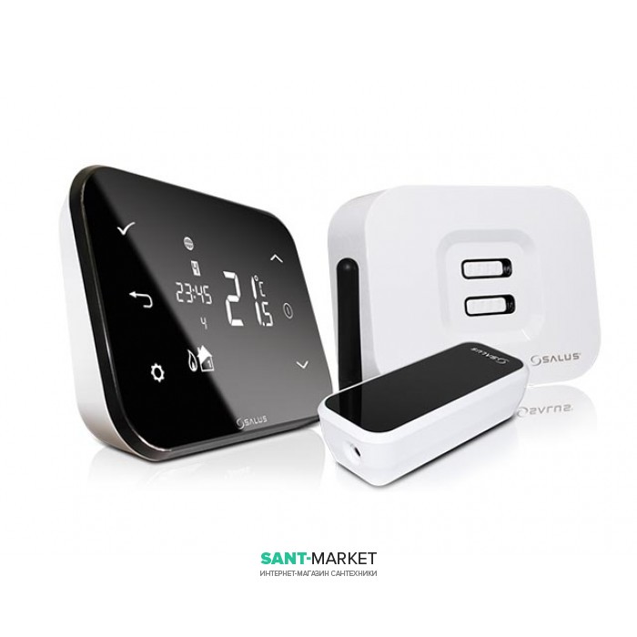 iT500 - совместимый с Интернетом, программируемый термостат, может контролировать отопление и горячую воду или отопление в двух зонах. Бесплатные Приложения на AppStore и GooglePlay позволяют управлять Вашей системой отопления со смартфона или планшета. Это позволяет сделать управление еще более гибким и эффективным. Беспроводная связь с модулем котла и шлюзом роутера (868 МГц) делает инсталляцию системы очень легкой и простой. Salus IT500 подключается к Вашей локальной сети (необязательно Wi-Fi) посредством шлюза, идущего в комплекте, использую LAN порт Вашего роутера.