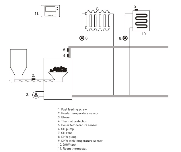 Простое управление котлом на твердом топливе и баком для горячей воды