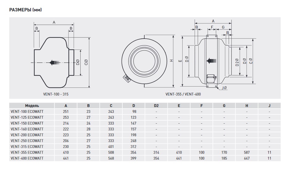 Промышленный вентилятор Soler&Palau Vent-315-Ecowatt круглый канальный с электродвигателем 5145880600