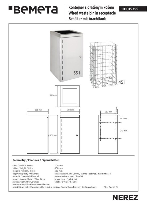 Проволочная мусорная корзина в контейнере Bemeta Hotel нержавеющая сталь матовая 101015355