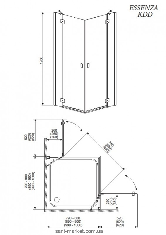 Квадратная кабина с одностворчатой распашной дверью и узкими боковыми стенками. Дверь открывается наружу кабины создавая широкий и удобный вход. Дверь подвешена на латунных, хромированных петлях с подъемно-опускным механизмом и системой позиционирования двери. Кабина доступна в правом и левом вариантах.