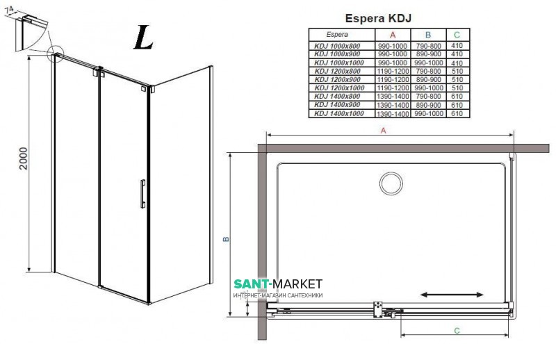 Прямоугольная кабина Espera KDJ это комбинация раздвижной двери и боковой стенки.