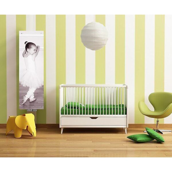 Радиатор задуман как рамка для фотографии. Передняя панель радиатора это съемный экран из закаленного стекла под который Вы можете установить свою любимую фотографию. Подключение теплоносителя спрятано за панелью.