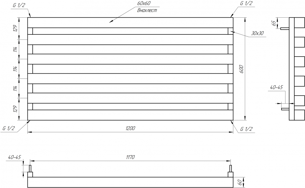 Радиатор отопления Genesis-Aqua Ascania 60х120 см нержавеющая сталь черный